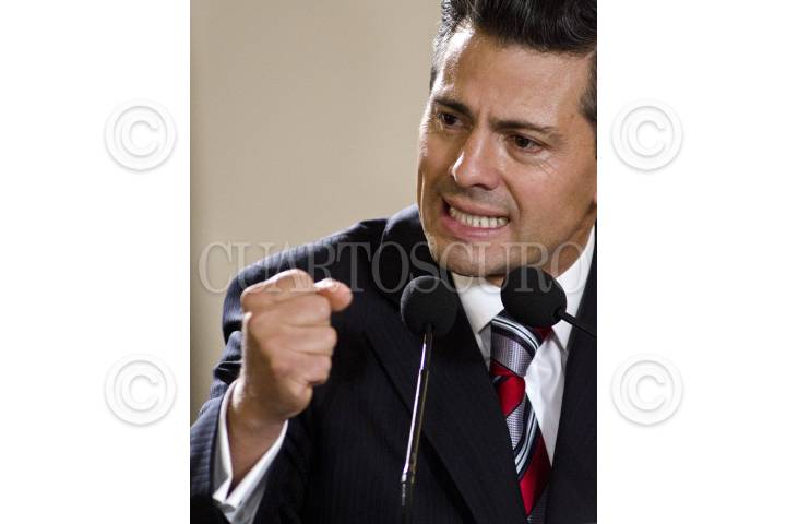MÉXICO, D.F., 08ENERO2013.- Enrique Peña Nieto, Presidente de México, durante su discurso en la comida de clausura de los trabajos de la XXIV Reunión de Embajadores y Cónsules de México que se realizó en el salón Tesorería de Palacio Nacional y ante la presencia de secretarios de estado y gobernadores. FOTO: MISAEL VALTIERRA / CUARTOSCURO.COM