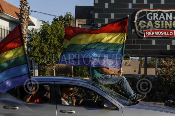 HERMOSILLO, SONORA, 18JUNIO2016.- Decenas de personas realizaron esta tarde una marcha por el orgullo lésbico gay, que busca mandar un mensaje de tolerancia hacia las personas de preferencias sexuales distintas y/o diversidad sexual. FOTO: LUIS GUTIÉRREZ /NORTE PHOTO /CUARTOSCURO.COM
