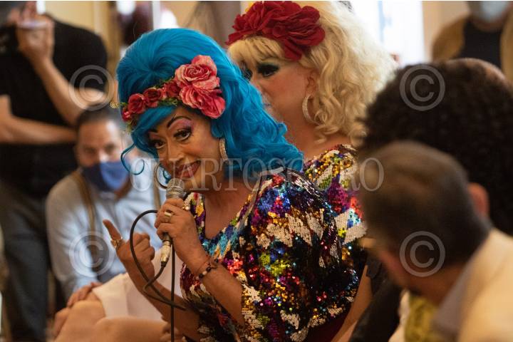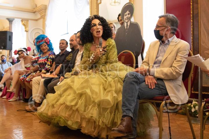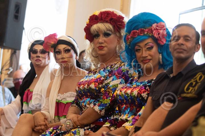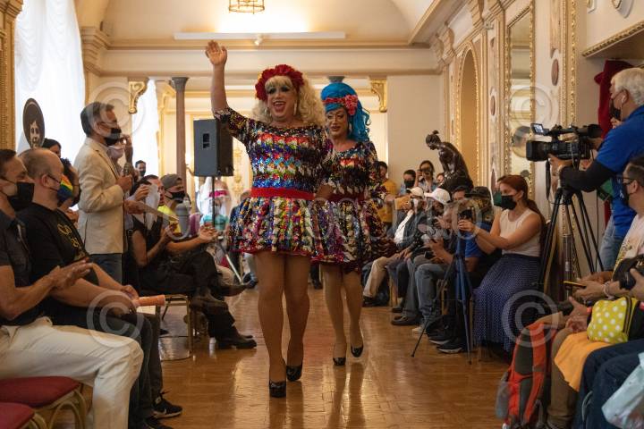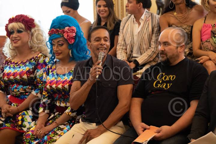 Roberto Cabral, director de Cabaret-Drag Queen, durante la presentación de las actividades de la 6o edición "Entre lenchas, vestidas y muscolocas", en el Teatro de la Ciudad Esperanza Iris.
