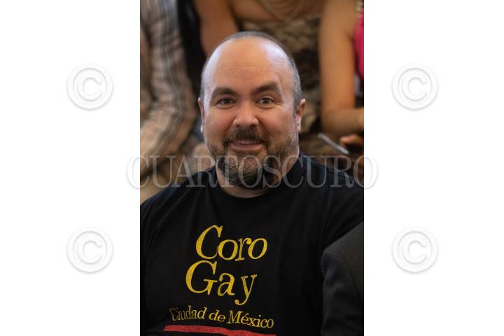 Oscar Urtusástegui, director ejecutivo del Coro Gay Ciudad de México, durante la presentación de las actividades de la 6o edición "Entre lenchas, vestidas y muscolocas", en el Teatro de la Ciudad Esperanza Iris.