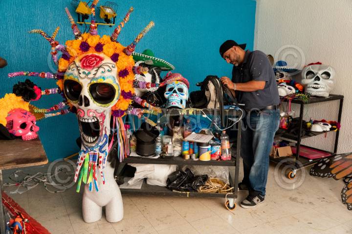 El equipo de utilería y accesorios realizó más de mil piezas para los personas principales y secundarios que participarán en la edición 2022 del Mega Desfile de Día de Muertos.