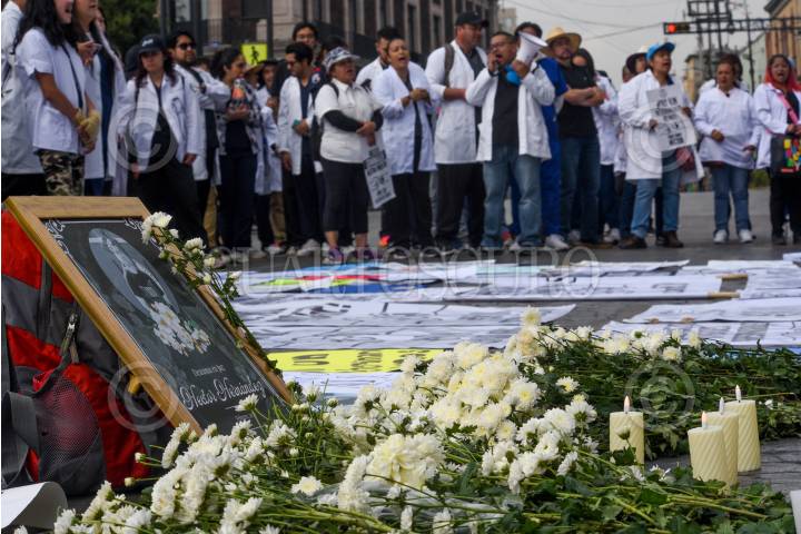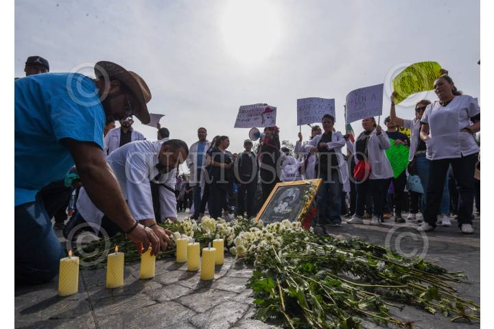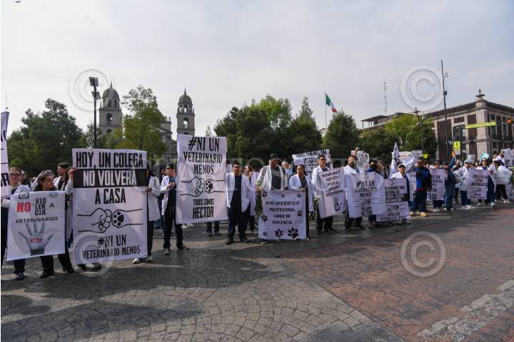 TOLUCA, ESTADO DE MÉXICO, 18FEBRERO2025.- Médicos veterinarios del Valle de Toluca se unieron este martes al paro nacional que exigen justicia por el asesinato del Dr. Héctor Hernández en Tultepec por una pareja, en la ciudad de Toluca marcharon y guardaron un minuto de silencio y exigieron un alto a la violencia a los médicos veterinarios. FOTO: CRISANTA ESPINOSA AGUILAR /CUARTOSCURO.COM