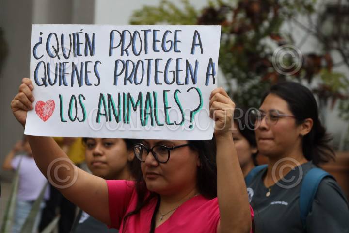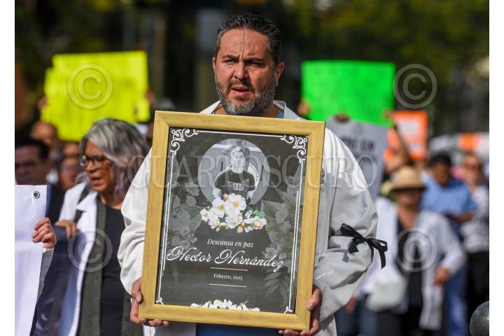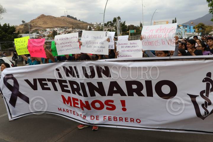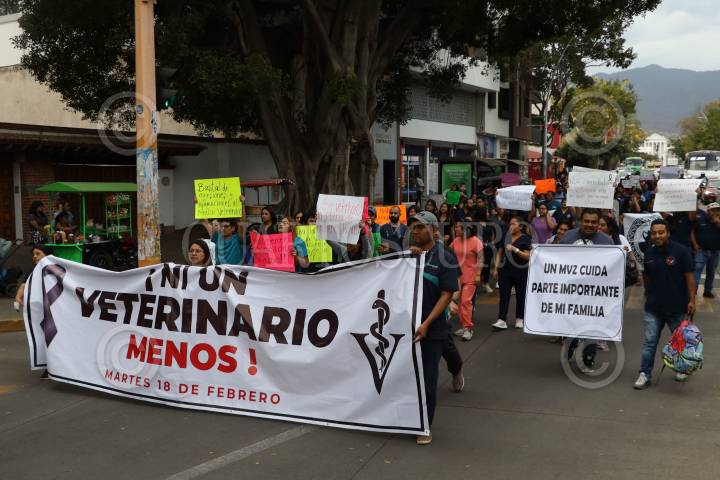 OAXACA DE JUÁREZ, OAXACA, 18FEBRERO2025.- Médicos veterinarios oaxaqueños marcharon en la capital de Oaxaca exigencia de justicia para el M.V.Z, Héctor Hernández, asesinado el pasado 11 de febrero en Tultepec, Estado de México, presuntamente por los dueños de una mascota a la que no pudo salvar la vida. Los manifestantes con pancartas y consignas pidieron seguridad y garantías para el ejercicio de su profesión. FOTO: CAROLINA JIMÉNEZ/CUARTOSCURO.COM