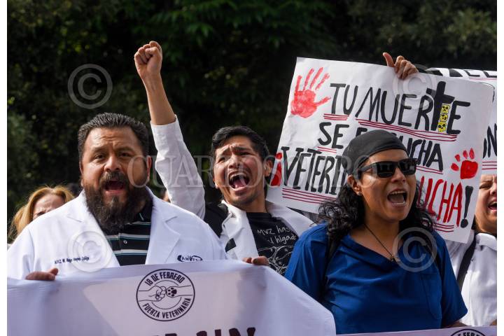CIUDAD DE MÉXICO, 18FEBRERO2025.- Médicos veterinarios protestaron afuera de la Cámara de Diputados para exigir justicia por sus derechos laborales. FOTO: GRACIELA LÓPEZ/CUARTOSCURO.COM