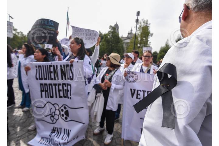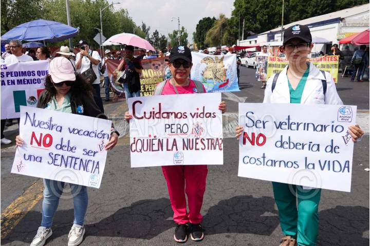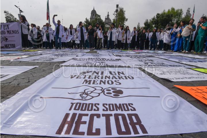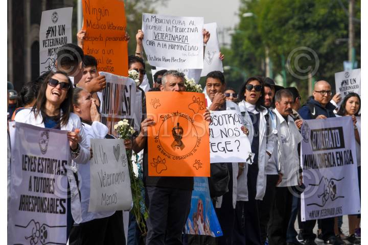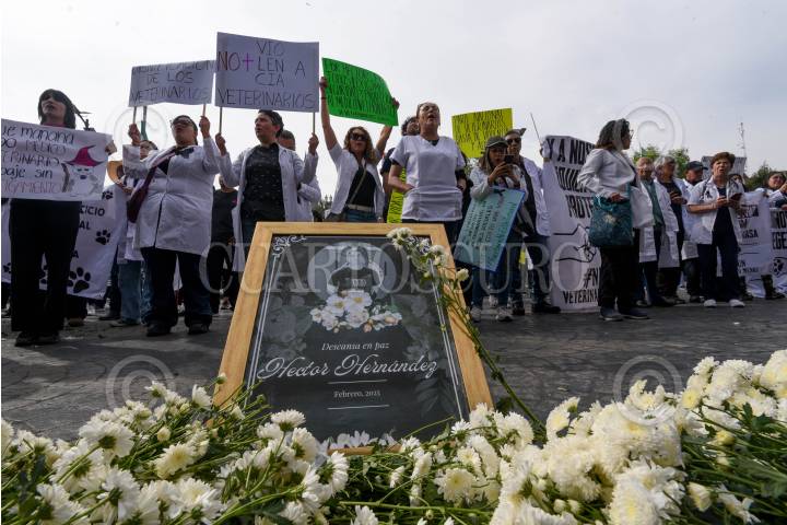 CIUDAD DE MÉXICO, 18FEBRERO2025.- Colectivo de estudiantes y profesionistas veterinarios se manifestaron debido al asesinato del zootecnista Héctor Hernández Cañas en Tultepec, Estado de México por los dueños de un perro Yorshire quien falleció debido a una obstrucción en el esófago tras ingerir un hueso. FOTO: GUSTAVO ALBERTO /CUARTOSCURO