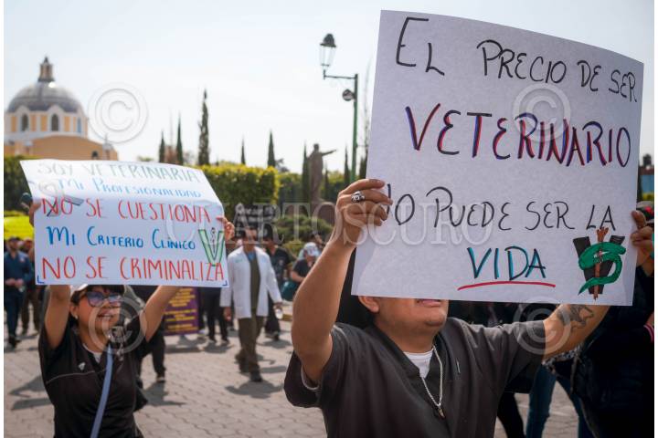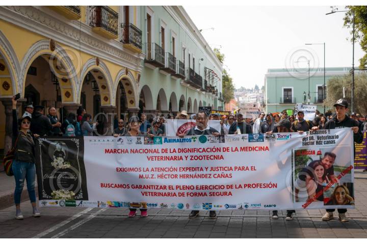 TLAXCALA, TLAXCALA, 18FEBRERO2025.- Marcha nacional de veterinarios exigen alto a la violencia y respeto profesional. Cientos de médicos veterinarios y zootecnistas (MVZ) de todo el país se unieron hoy a la Marcha Nacional por la Dignificación de la Medicina Veterinaria y Zootecnia, que tuvo su réplica en las calles del centro histórico de Tlaxcala capital. La movilización responde al reciente asesinato de un MVZ en el Estado de México, presuntamente a manos de los dueños de un perro que no sobrevivió a una cirugía. FOTO: ALAÍN HERNÁNDEZ/CUARTOSCURO.COM