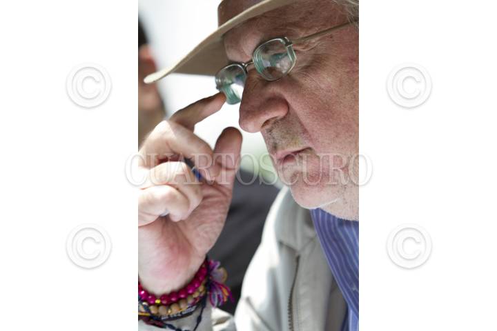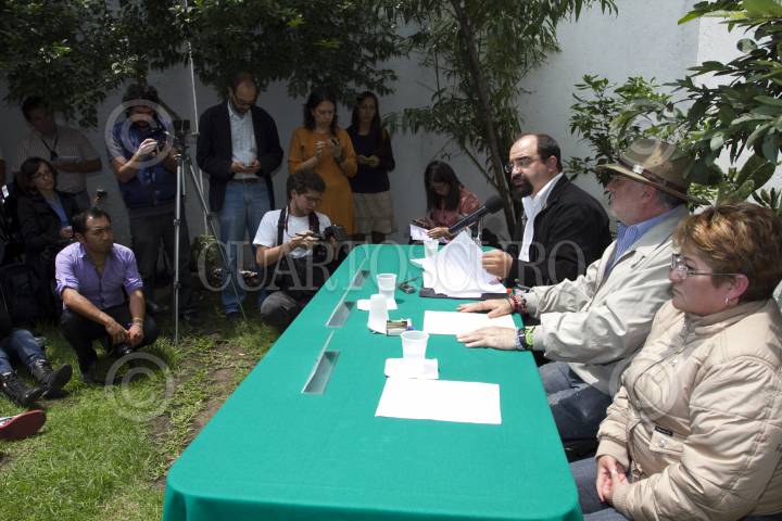 MÉXICO D.F., 05JULIO2012.- Javier Sicilia acompañado de Emilio Álvarez Icaza, lamentó el veto del Presidente Felipe Calderón a la Ley General de Víctimas de la Violencia y el Abuso del Poder, aprobada por la Cámara de Diputados el pasado 30 de abril, la cual no ha sido promulgada en el Diario Oficial de la Federación por la Presidencia. El poeta calificó como una "traición" el hecho de que el Ejecutivo Federal enviara observaciones el pasado domingo a las 20:00 horas a la Ley aprobada por unanimidad en ambas cámaras legislativas hace meses, con el objeto de impedir su publicación. FOTO: GUILLERMO PEREA /CUARTOSCURO.COM