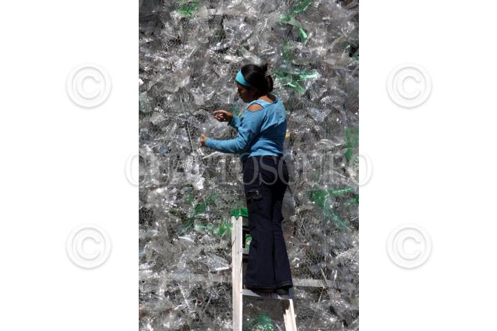 MÉXICO, D.F., 18DICIEMBRE2010.- Jóvenes terminan un árbol de navidad de 10 metros de altura el cual esta cubierto con botellas de PET, el cual contará con iluminación de leds y que a su vez estará conectado a una planta de luz que será alimentada con biodiesel, este árbol se encuentra en la explanada del Jardín Botánico del Bosque de Chapultepec. FOTO: RODOLFO ANGULO/CUARTOSCURO.COM
