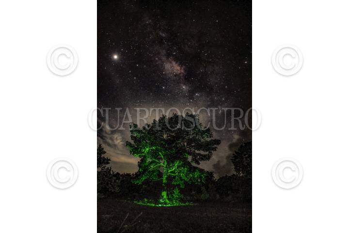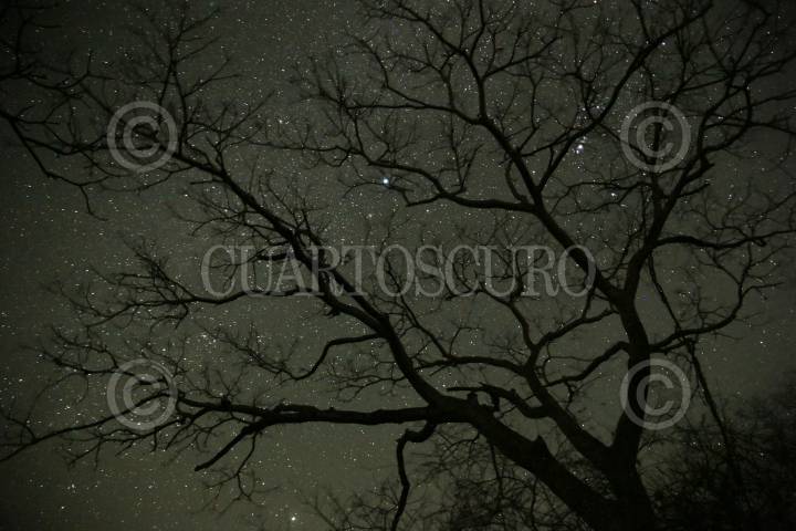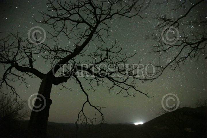 Las estrellas emergen en el horizonte detrás de un mezquite en la comunidad de San Juan Teocalcingo, en Atengo del Rio, Guerrero.