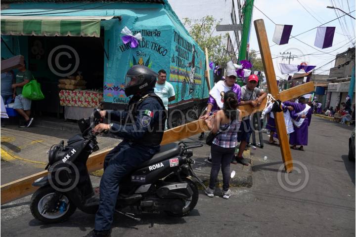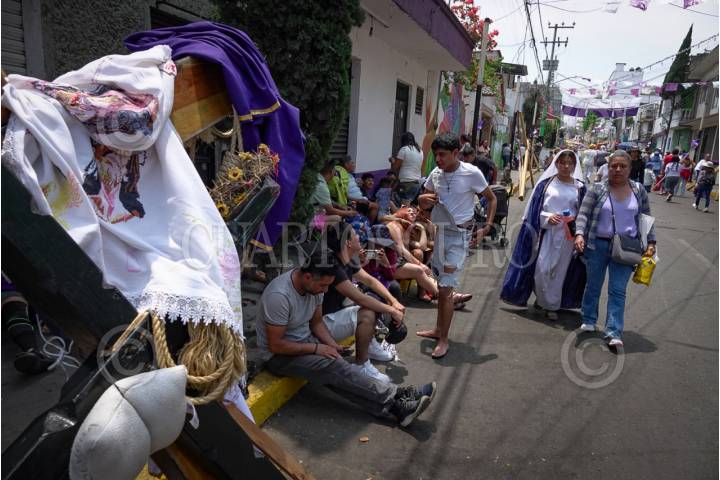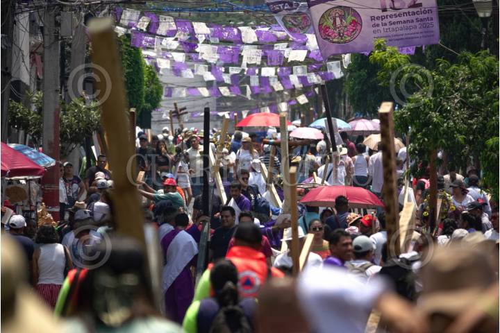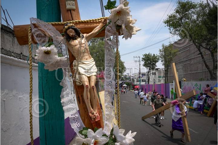 CIUDAD DE MÉXICO 18ABRIL2025.- Miles de personas provenientes de todo el país y diversas partes del mundo, asistieron a la 182 representación del Viacrucis en calles de la alcaldía Iztapalapa FOTO: ROGELIO MORALES CUARTOSCURO.COM