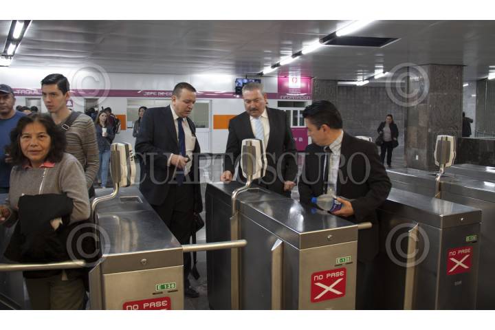 CIUDAD DE MÉXICO, 22SEPTIEMBRE2016.- Los diputados panistas Leonel Cordero, Pedro Garza Treviño y Ernesto Ibarra Montoya utilizaron el Sistema de Transporte Colectivo Metro, para dirigirse al Palacio Legislativo, en el marco del Día Nacional sin Automóvil. FOTO: ANTONIO CRUZ /CUARTOSCURO.COM