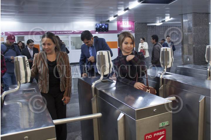 CIUDAD DE MÉXICO, 22SEPTIEMBRE2016.- Las diputadas panistas Ángeles Rodríguez y Minerva Hernández Ramos, utilizaron el Sistema de Transporte Colectivo Metro, para dirigirse al Palacio Legislativo, en el marco del Día Nacional sin Automóvil. FOTO: ANTONIO CRUZ /CUARTOSCURO.COM