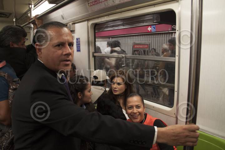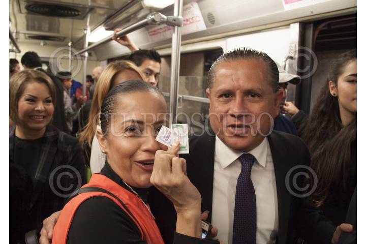 CIUDAD DE MÉXICO, 22SEPTIEMBRE2016.- Los diputados panistas Gretel Kuri Ernesto Ibarra, y Cristina Jiménez, utilizaron el Sistema de Transporte Colectivo Metro, para dirigirse al Palacio Legislativo, en el marco del Día Nacional sin Automóvil. FOTO: ANTONIO CRUZ /CUARTOSCURO.COM