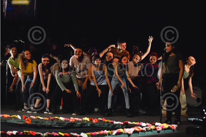 Presentación de la puesta en escena "Los jóvenes viajan en el metro" como parte del "Festival Barrio Adentro" celebrado en el Teatro de la Ciudad Esperanza Iris.