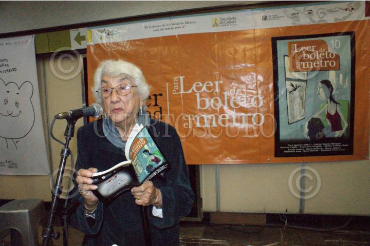 MÉXICO D.F., 21ENERO2009.- Dolores Castro, poetiza en la presentación de la nueva antología del programa para leer de boleto en el Metro. Asistieron autores y un grupo musical amenizo el evento. FOTO: VICTORIA VALTIERRA/CUARTOSCURO.COM