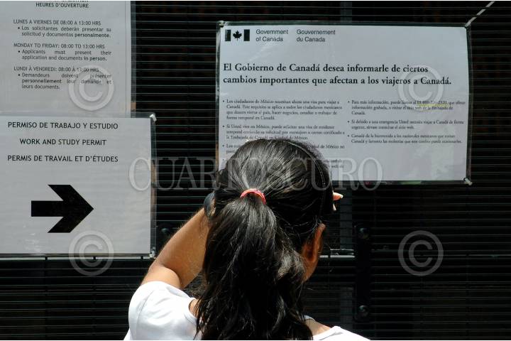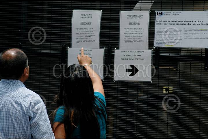 MÉXICO, D.F., 17JULIO2009.- Cientos de personas continúan formadas a las afueras de la embajada de Canada para tramitar la visa que exige este país a los mexicanos que quieran viajar a este destino. FOTO: RODOLFO ANGULO/CUARTOSCURO.COM