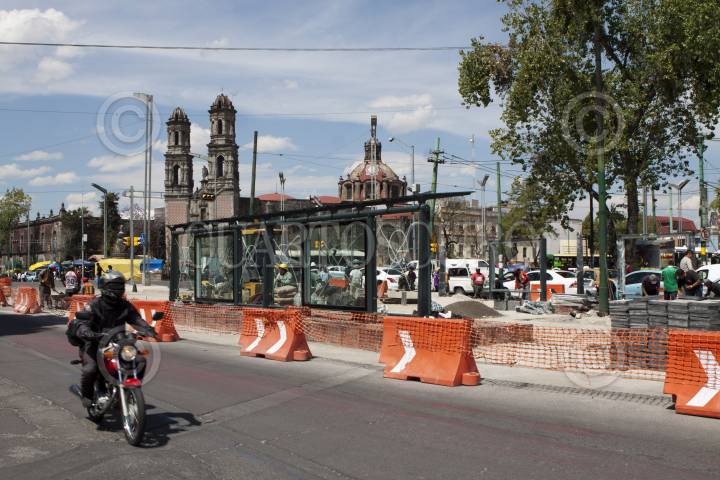 MÉXICO, D.F., 17FEBRERO2012.- Las primeras estaciones de la Línea 4 del Metrobus, la cual correrá de Buenavista al Centro Histórico, empiezar a tomar forma sobre avenida Hidalgo. Una vez que la Línea 4 del Metrobús sea puesta en marcha, la capacidad vial de Eje 1 Poniente Bucareli se reducirá hasta en 60 por ciento debido a la reducción de carriles. FOTO: MOISÉS PABLO/CUARTOSCURO.COM