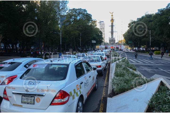 CIUDAD DE MÉXICO, 07OCTUBRE2019.- Taxistas capitalinos y del Estado de México ya empezaron a concentrarse en las inmediaciones del Ángel de la Independencia para manifestarse en contra del transporte a través de aplicaciones como Uber y Cabify. FOTO: ARMANDO MONROY /CUARTOSCURO.COM