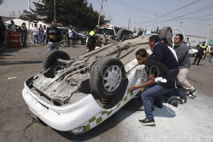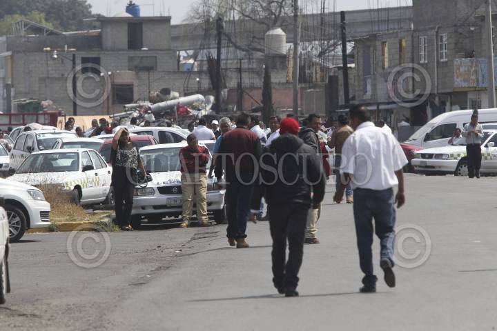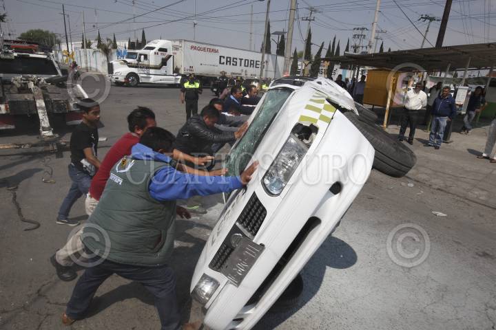 LERMA, ESTADO DE MÉXICO, 26FEBRERO2018.- Taxistas de Ocoyoacac y Lerma tuvieron un enfrentamiento, en la entrada del municipio de Lerma, disputándose los lugares para poder levantar pasaje en la zona industrial de Lerma, volcaron una unidad y dejaron sin servicio a los habitantes de los municipios de Lerma, San Mateo Atenco y Ocoyoacac que utilizan este servicio colectivo. FOTO: ARTEMIO GUERRA BAZ /CUARTOSCURO.COM