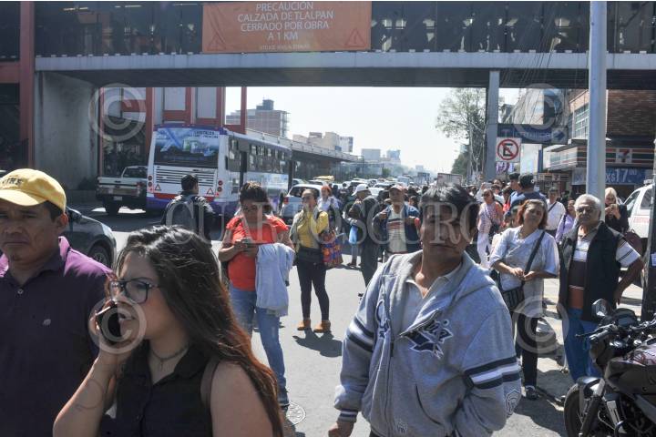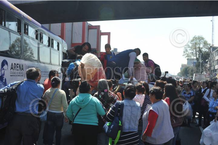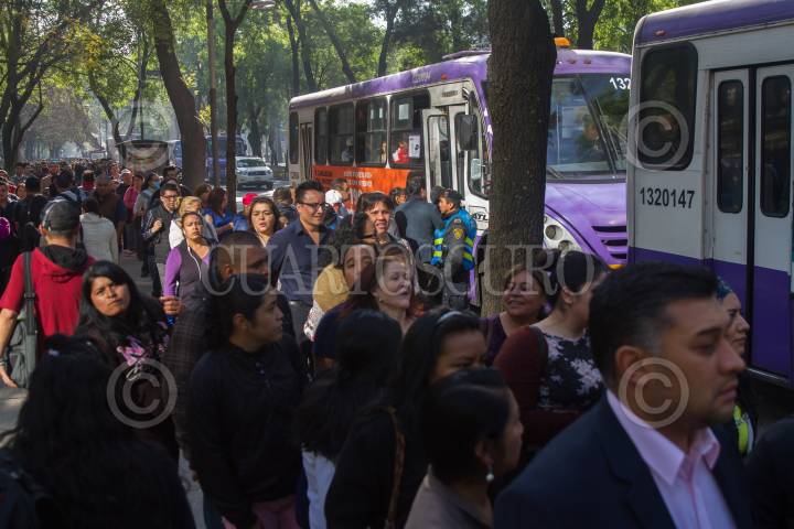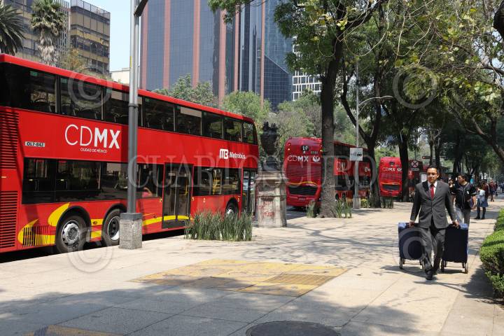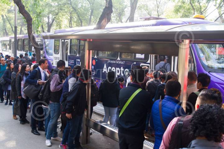 CIUDAD DE MÉXICO, 05MARZO2018.- Las unidades del Metrobus Línea 7 quedaron atoradas en Reforma luego de que se presentó una protesta de campesinos que bloquearon esta arteria. Una fila de estas nuevas unidades se pudieron observar estacionadas en lo que se liberaba esta vía. FOTO: BERNANDINO HERNÁNDEZ /CUARTOSCURO.COM