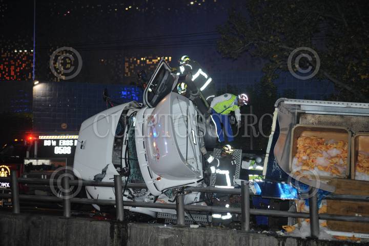 Tráiler dejo su carga regada sobre avenida Constituyentes, al volcar por el exceso de velocidad con que tomo la vuelta al incorporarse a esta vialidad en la colonia Lomas de Chapultepec.