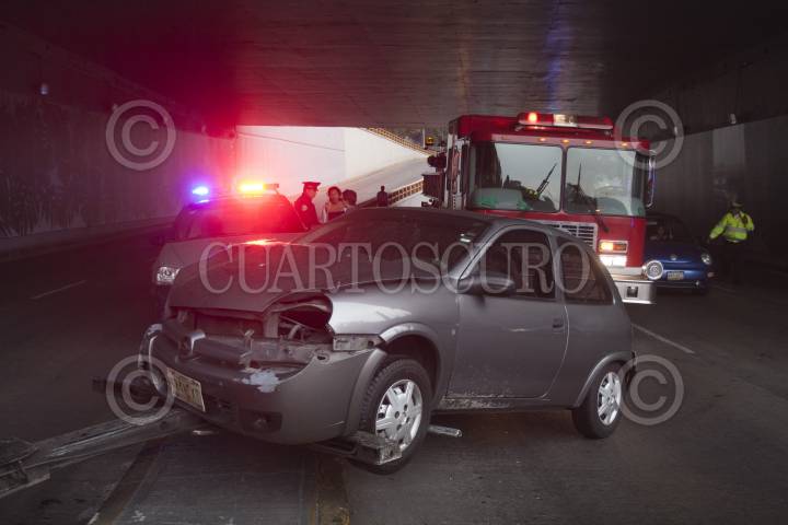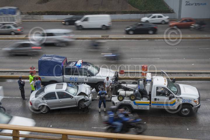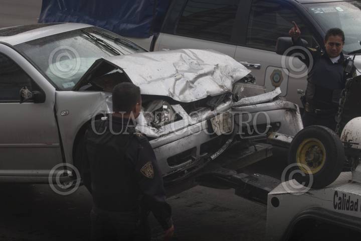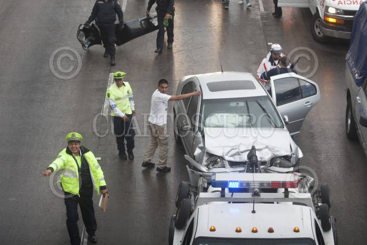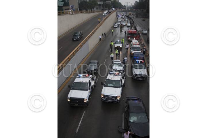 MÉXCICO, D.F., 23ABRIL2013.- Debido a la ligera lluvia que se registró esta tarde cuatro autos chocaron en Circuito Interior y Reforma. Según los reportes policiales, un auto negro placas MEC 50 13 circulaba en con dirección a La Raza, brincó el camellón y se impacto contra al menos 3 vehículos. Hasta el momento se reportan 2 lesionados obstruyendo la vialidad con dirección a Constituyentes, alrededor de 30 minutos. FOTO: JUAN PABLO ZAMORA /CUARTOSCURO.COM
