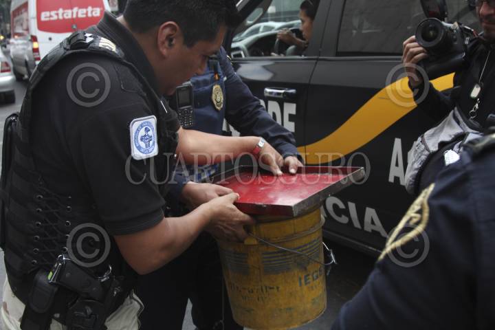 MÉXICO, D.F., 05JUNIO2015.- Una víbora fue hallada muerta en una de las jardineras de la explanada del registro civil ubicada en la calle de doctor Andrade y Arcos de Belem. Policía de investigación que resguarda el lugar levanto al reptil. FOTO: ARMANDO MONROY /CUARTOSCURO.COM