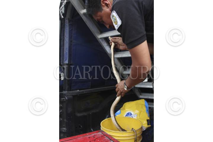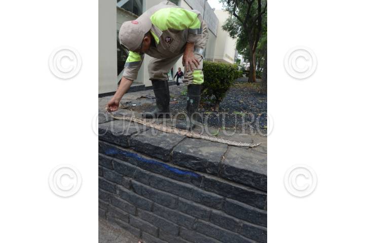 MÉXICO, D.F., 02JULIO2014.- Personal de protección animal aseguraron a una víbora de aproximadamente 150 centímetros de largo en una jardinera ubicada en las calles de San Francisco y Félix Cuevas en la colonia del Valle. FOTO: SAÚL LÓPEZ /CUARTOSCURO.COM
