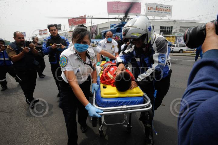 MÉXICO, D.F., 29MAYO2015.- Un menor de 10 años que fue mordido por una víbora de cascabel fue trasladado en helicóptero de Teotongo al Eje 2 Norte y Eje Central, para llevarlo vía terrestre al Hospital Pediátrico de Peralvillo. FOTO: ARMANDO MONROY /CUARTOSCURO.COM