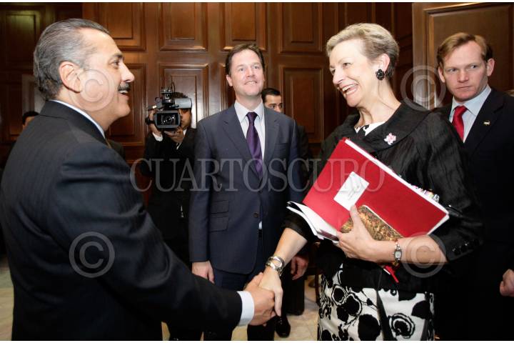 MÉXICO, D.F., 29MARZO2011.- Manlio Fabio Beltrones, presidente de la mesa directiva del Senado de la República saluda a Judith MacGregor, embajadora de Reino Unido en México, durante la reunión que sostuvieron con motivo de la visita del viceministro de la Gran Bretaña, Nicholas Clegg. FOTO: CUARTOSCURO.COM