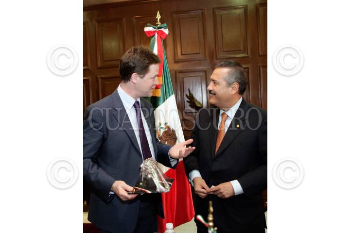MÉXICO, D.F., 29MARZO2011.- Manlio Fabio Beltrones, presidente de la mesa directiva del Senado de la República conversa con Nicholas Clegg, viceministro del Reino Unido, durante la visita del británico a la Cámara de Senadores. FOTO: CUARTOSCURO.COM