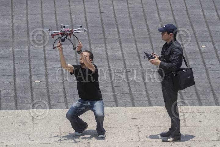 MÉXICO, D.F., 03MAYO2015.- Dos jóvenes vuelan un dron sobre Paseo de la Reforma; en días recientes la Secretaría de Comunicaciones y Transportes reglamentó el uso de este tipo de aeronaves no tripuladas. FOTO: ISAAC ESQUIVEL /CUARTOSCURO.COM