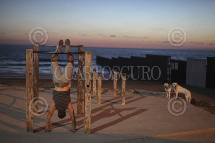 TIJUANA, BAJA CALIFORNIA, 10 AGOSTO 2015.- Tijuanenes disfrutan del atardecer a un costado del muro fronterizo en Playas de Tijuana. FOTO: CHRISTIAN SERNA /CUARTOSCURO.COM