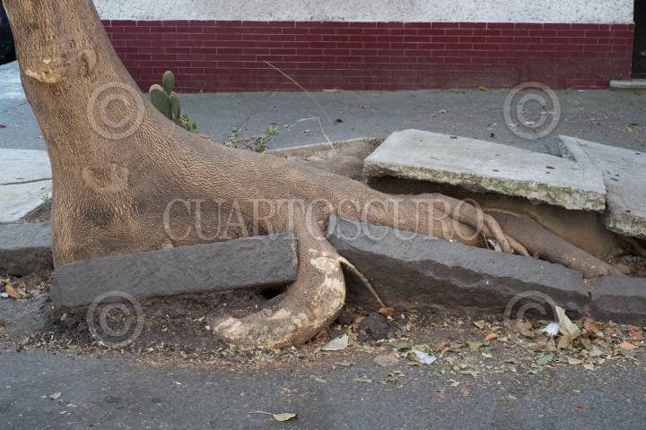 MÉXICO D.F., 01ENERO2013.- En la calle de Pachuca, colonia Condesa, se aprecia una banqueta destruida por un arbol. FOTO: PEDRO VALTIERRA /CUARTOSCURO.COM