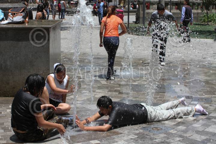 CIUDAD, DE MÉXICO, 12ABRIL2017.- Debido a las altas temperaturas que se han registrado estos últimos días, en la ciudad, jóvenes y niños se refrescan en una de las fuentes de la Alameda Central. FOTO: ANTONIO CRUZ /CUARTOSCURO.COM