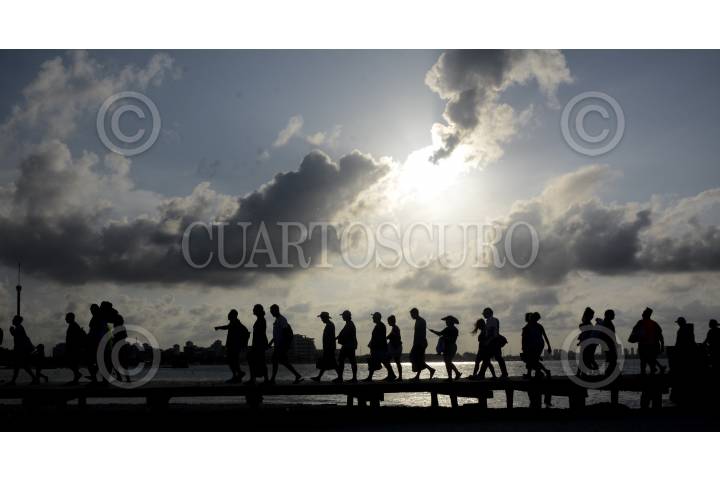 CANCÚN QUINTANA ROO, 14JUNIO2016.- Turistas nacionales e internacionales regresan de un paseo turístico en playa langosta. FOTO: ELIZABETH RUÍZ /CUARTOSCURO.COM