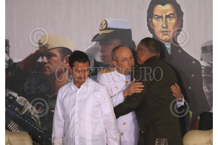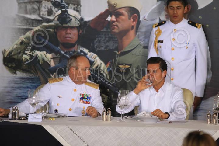 GUAYMAS, SONORA, 23NOVIEMBRE2016.- Enrique Peña Nieto, presiente de México, acompañado del Secretario de Marina, Vidal Francisco Soberon Sanz, Salvador Cienfuegos, Secretario de la Defensa y la gobernadora de Sonora, Claudia Pavlovich, asistieron a la comida para celebrar el dia de la Armada de México realizado en un hotel del puerto de Guaymas. FOTO: SAÚL LÓPEZ /CUARTOSCURO.COM