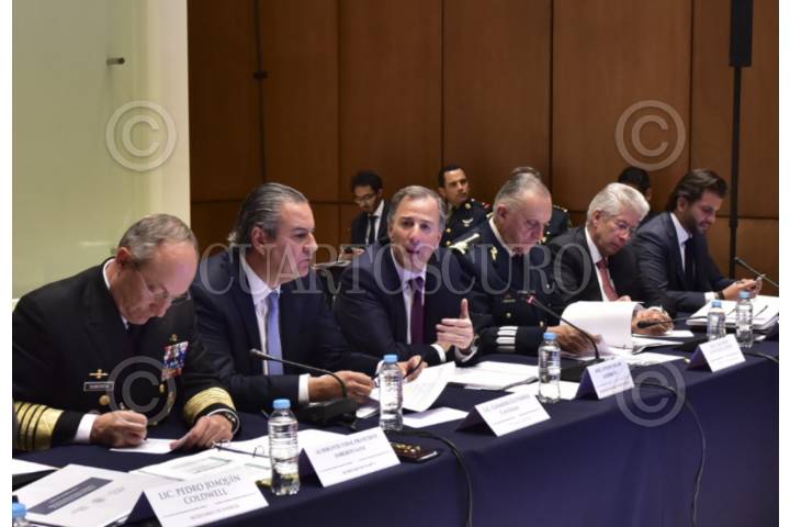 CIUDAD DE MÉXICO, 09FEBRERO2017.- Pedro Joaquín, Secretario de Energía, Vidal Francisco Soberano, Secretario de Marina, Gerardo Gutiérrez, jefe de la AFDZEE, José Antonio Meade, Secretario de Hacienda, Salvador Cienfuegos, Secretario de la Defensa Nacional, Gerardo Esparsa, Secretario de Comunicaciones y Transportes y Rafael Pacchiano Alamán, Secretario de la SEMARNAT, durante la la Primera Sesión Ordinaria de la Comisión Intersecretarial de las Zonas Económicas Especiales (ZEE), en la que fue definida la operación de estas regiones económicas para 2017 y 2018. FOTO: SHCP /CUARTOSCURO.COM