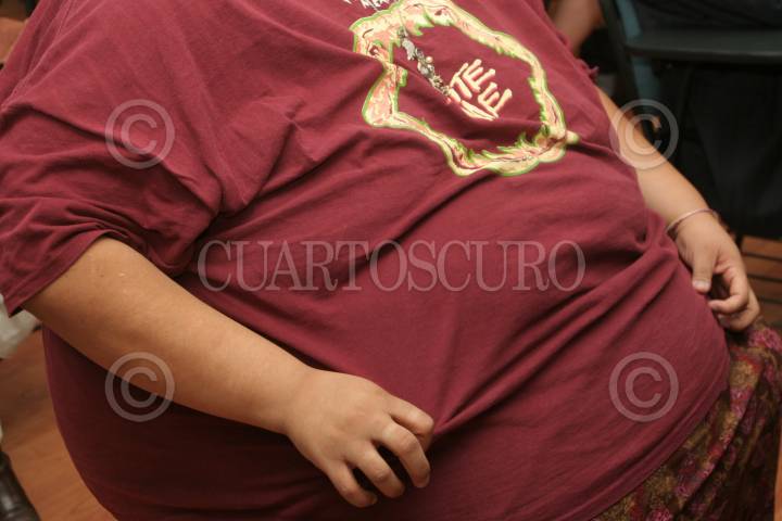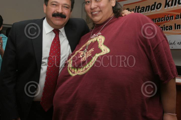 MÉXICO, D.F., 06OCTUBRE2010.- Señor beneficiado por el programa "Quitando Kilos... Salvando Vidas" que mantiene la Ciudad de México para ayudar a combatir el problema de obesidad mórbida donde llevo la camisa que usaba hace algunos meses antes de ser tratado. FOTO: ENRIQUE ORDÓÑEZ/CUARTOSCURO.COM
