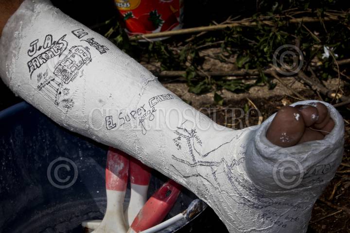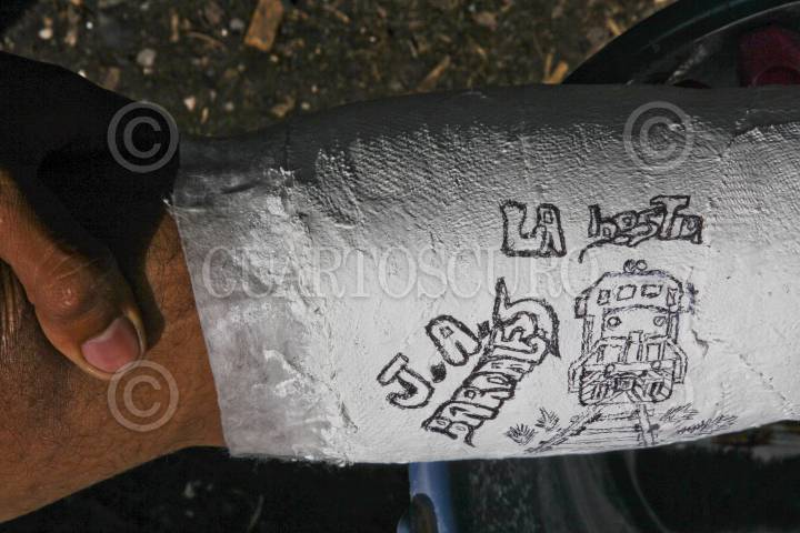 HUEHUETOCA, ESTADO DE MEXICO, 24AGOSTO2012.- Carlos quien es de origen hondureño y cuenta con 24 años de edad, tomo la decisión de abordar “La Bestia” para llegar a California en Estados Unidos y juntar dinero para mantener a su mujer que lleva 5 meses de embarazo; en el estado de Tabasco cayo del tren provocándole una ruptura en su pie lo cual le ha impedido llegar a su objetivo final pero no ha quitado el pensamiento de continuar pues asegura que cualquier lugar es mejor que su país en cuestión de trabajo. Su intención es recuperarse para continuar con su viaje a California donde a el y a su primo los espera una tía que radica allá. FOTO: ENRIQUE ORDOÑEZ /CUARTOSCURO.COM