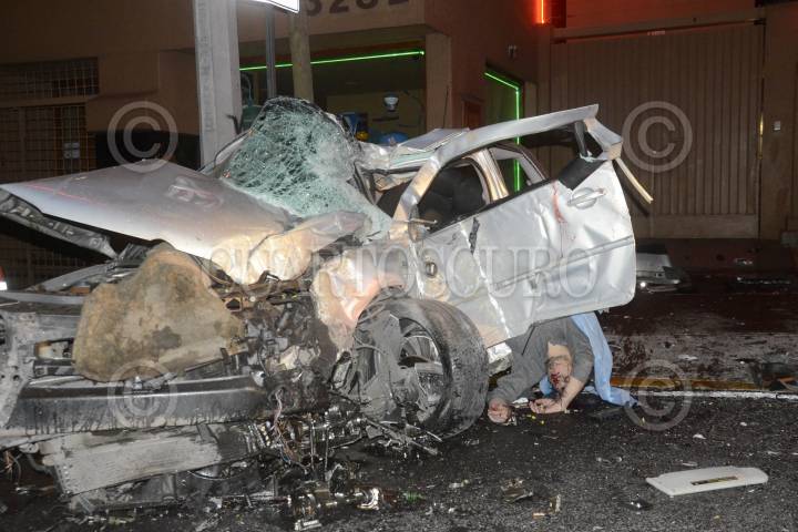 MÉXICO D.F. 03NOVIEMBRE2013.- Dos jóvenes pierden la vida, al impactarse con el auto en que viajaban contra la fachada de un negocio sobre Periférico a la altura de San Jerónimo.. Paramédicos de Cruz Roja, acudieron al apoyo de este accidente donde certificaron la muerte de estos jóvenes. FOTO: LUIS CARBAYO /CUARTOSCURO.COM