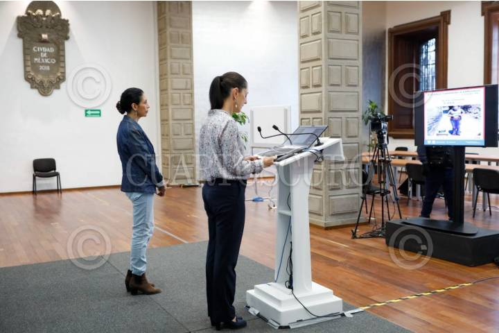 Claudia Sheinbaum, jefa de Gobierno, encabezó una videoconferencia para atender preguntas de los medios de comunicación en el Palacio de Ayuntamiento