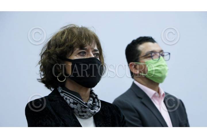 Olivia López Arellano, secretaria de Salud de la Ciudad de México, durante la videoconferencia para atender a medios de comunicación en el Placio de Ayuntamiento