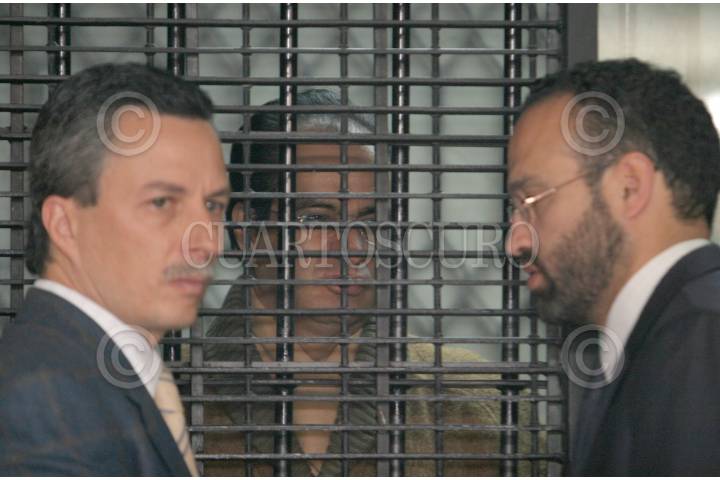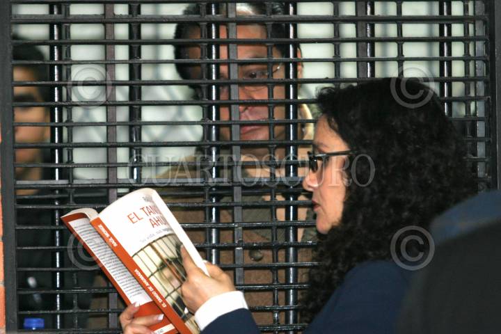 MEXICO, D.F. 13NOVIEMBRE2004.- René Bejarano, tras la rejilla de prácticas, conversa con sus abogados durante la ampliación de su declaración. FOTO: Nelly Salas/CUARTOCURO.COM