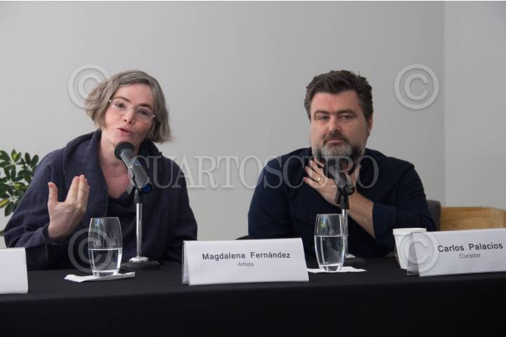 CIUDAD DE MÉXICO, 28MARZO2019.- La artista Magdalena Fernández y el curador Carlos Palacios encabezaron el recorrido para medios de la exposición "Magdalena, Ecosfernández", la cual reúne piezas abstractas de arte sonoro, video, instalación, videoinstalación y grabado. La exposición estará abierta al público a partir del 30 de marzo hasta el 23 de junio en el Museo de Arte Carrillo Gil. FOTO: GRACIELA LÓPEZ /CUARTOSCURO.COM