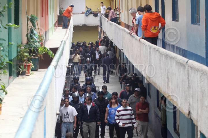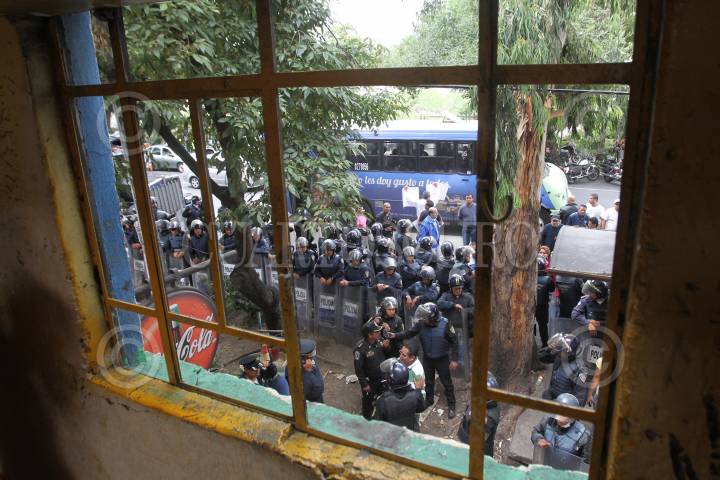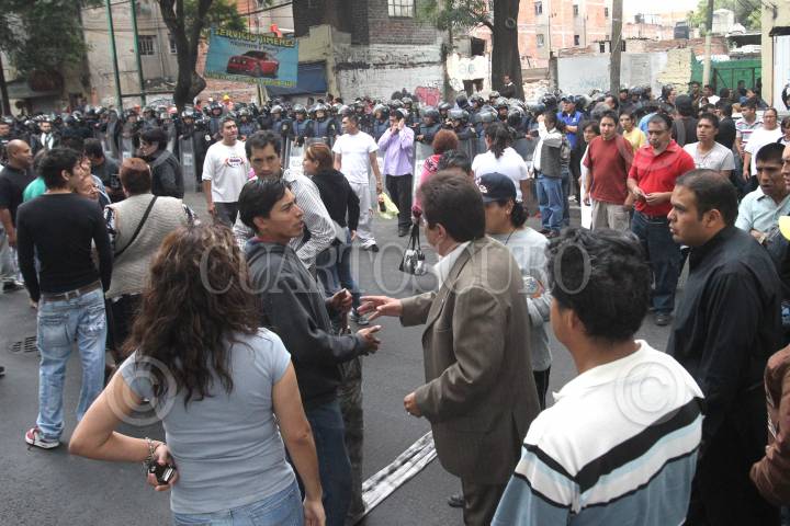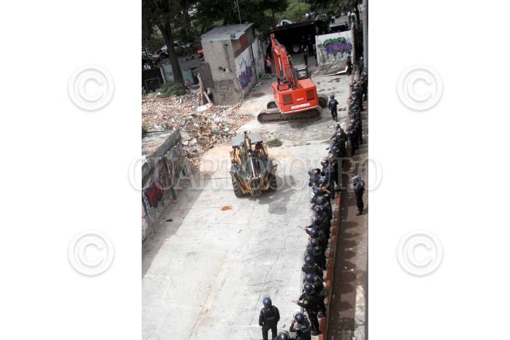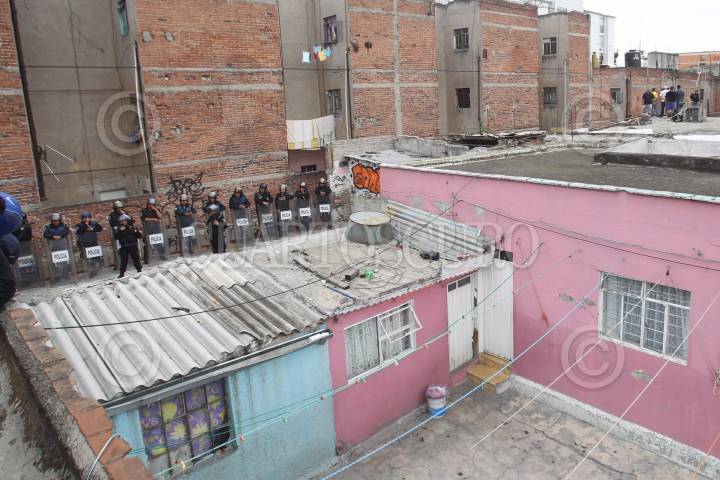 MÉXICO, D.F., 01JULIO2010.- Algunas familias, fueron desalojadas de los predios ubicados en Eje 5, a la altura de la calle Cumbres de Maltrata en la colonia Narvarte, perímetro de la delegación Benito Juárez, debido a que las construcciones ya eran muy viejas y que los habitantes no demostraron ser los propietarios de estos predios. Al lugar, arribaron actuarios apoyados por Granaderos de la Secretaria de Seguridad Publica para evitar algún conflicto. FOTO: LUIS CARBAYO/CUARTOSCURO.COM