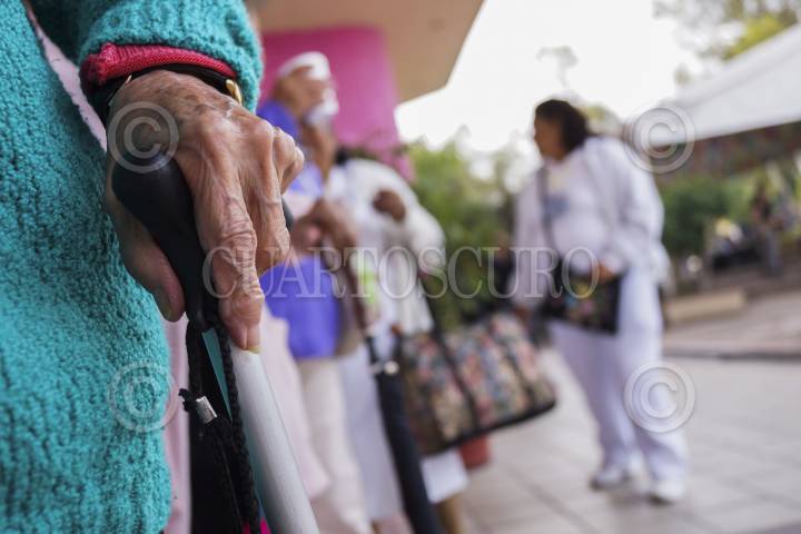 MÉXICO, D.F., 31AGOSTO2012.- Personas de la tercera edad acudieron a la explanada de la Delegacion Alvaro Obregon, en donde se llevó a cabo la "Feria del Aduylto Mayor", en ella se vendieron artesanías elaboradas por adultos mayores, así como también se realizaron diversas actividades culturales, y revisiones médicas gratuitas. FOTO: PEDRO ANZA /CUARTOSCURO.COM