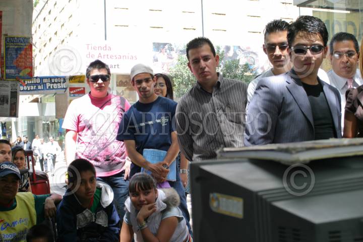 MÉXICO, D.F., 12AGOSTO2009.- Miles de personas dejaron por unos momentos sus actividades cotidianas para dar seguimiento al partido de futbol de México contra Estados Unidos, que al final quedo con un marcador de 2-1 en favor de la escuadra nacional. FOTO: MISAEL VALTIERRA/CUARTOSCURO.COM