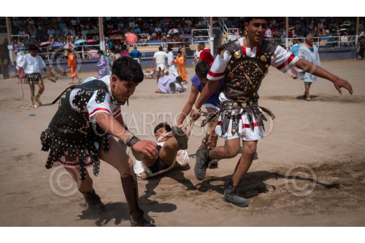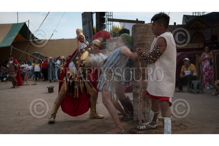 SANTA CRUZ AQUIAHUAC, TLAXCALA, 18ABRIL2025.- La comunidad de Santa Cruz Aquiahuac se convirtió este Viernes Santo en el escenario de una emotiva representación de pasajes bíblicos, conocida como el "Circo Romano". Con un realismo impactante, los pobladores recrearon escenas de la Pasión de Cristo, transportando a los espectadores a la Jerusalén de hace más de 2.000 años. FOTO: ALAIN HERNÁNDEZ/CUARTOSCURO.COM