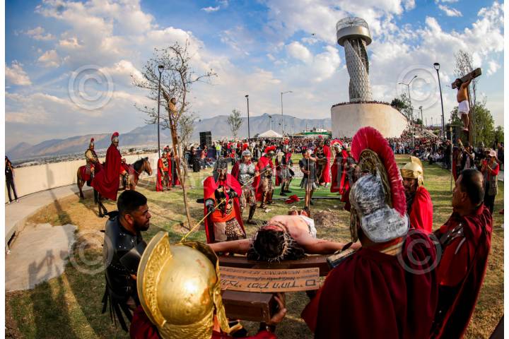 SALTILLO, COAHUILA, 18ABRIL2025.- Alrededor de cinco mil personas se dieron cita la tarde de este viernes santo para presenciar el viacrucis número 48 en las instalaciones de la iglesia Ojo de Agua en la ciudad de Saltillo Coahuila, ya que es uno de los recorridos más reconocidos en México. FOTO: ALEJANDRO RODRÍGUEZ/CUARTOSCURO.COM